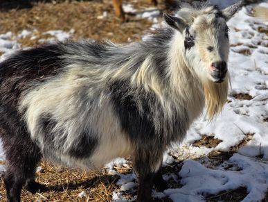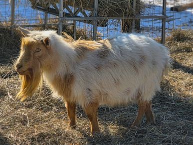 Ike is our creepy goat but we love him! Anytime you are outside if you look around, you can see him peeping around a corner or in a doorway at you.